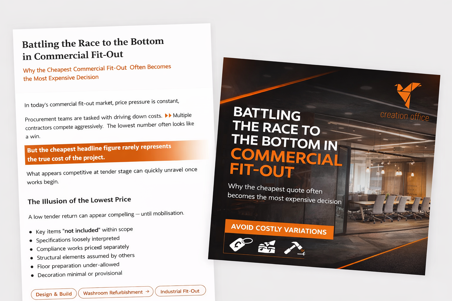 If you’re reviewing tender returns or planning your next commercial fit-out, speak to our team before committing to the lowest figure: